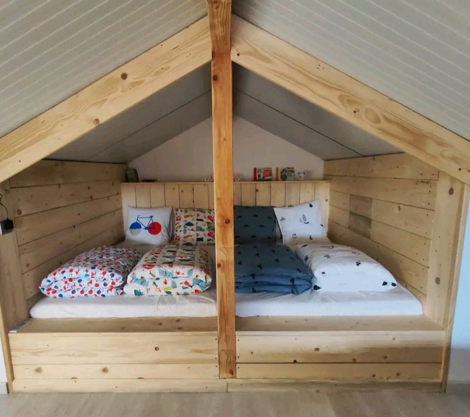 Mezzanine : lit parental de 160cm et lit cabane pour 4 enfants de 280cm (2×140). Attention, merci de prendre en compte qu’il n’y a pas de chambre fermĂ©e.